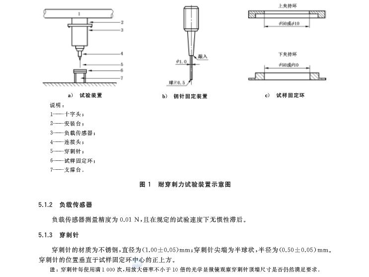 试样至少裁取五个25*25mm或者100*100mm的试样,试验穿刺速度为50mm/min或者100mm/min,还可以采用200mm/min的速度加载。