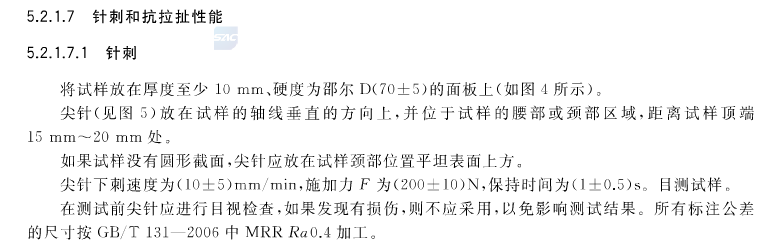 针刺试验是取规定尺寸的针头以10mm/min的速度施加至200N的力值保持1S,目测试样有没有损失。