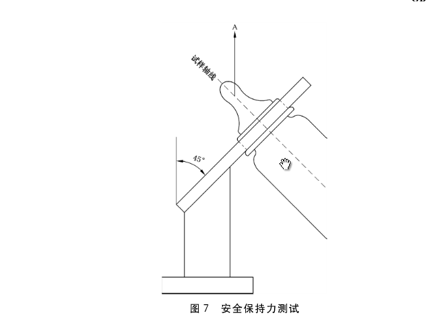保持力试验是在施力方向45°施加60N的力值保持10S,目测试品完整度。