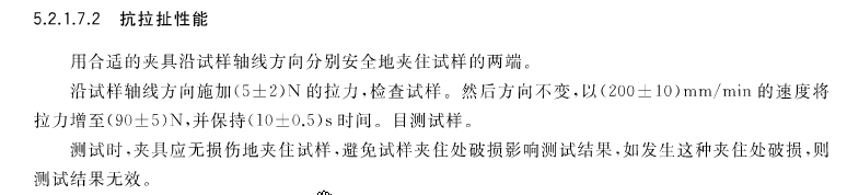 抗拉扯试验是以200mm/min的速度将拉力增至90S,保持10s,目测试品。