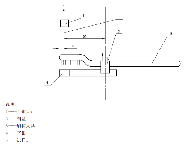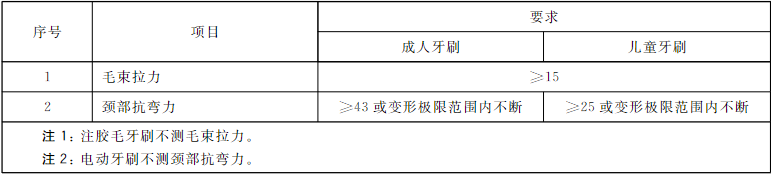 颈部抗弯力的要求是试验速度 100mm/min,要求成人牙刷大于43N不断裂和儿童牙刷25N不断裂。